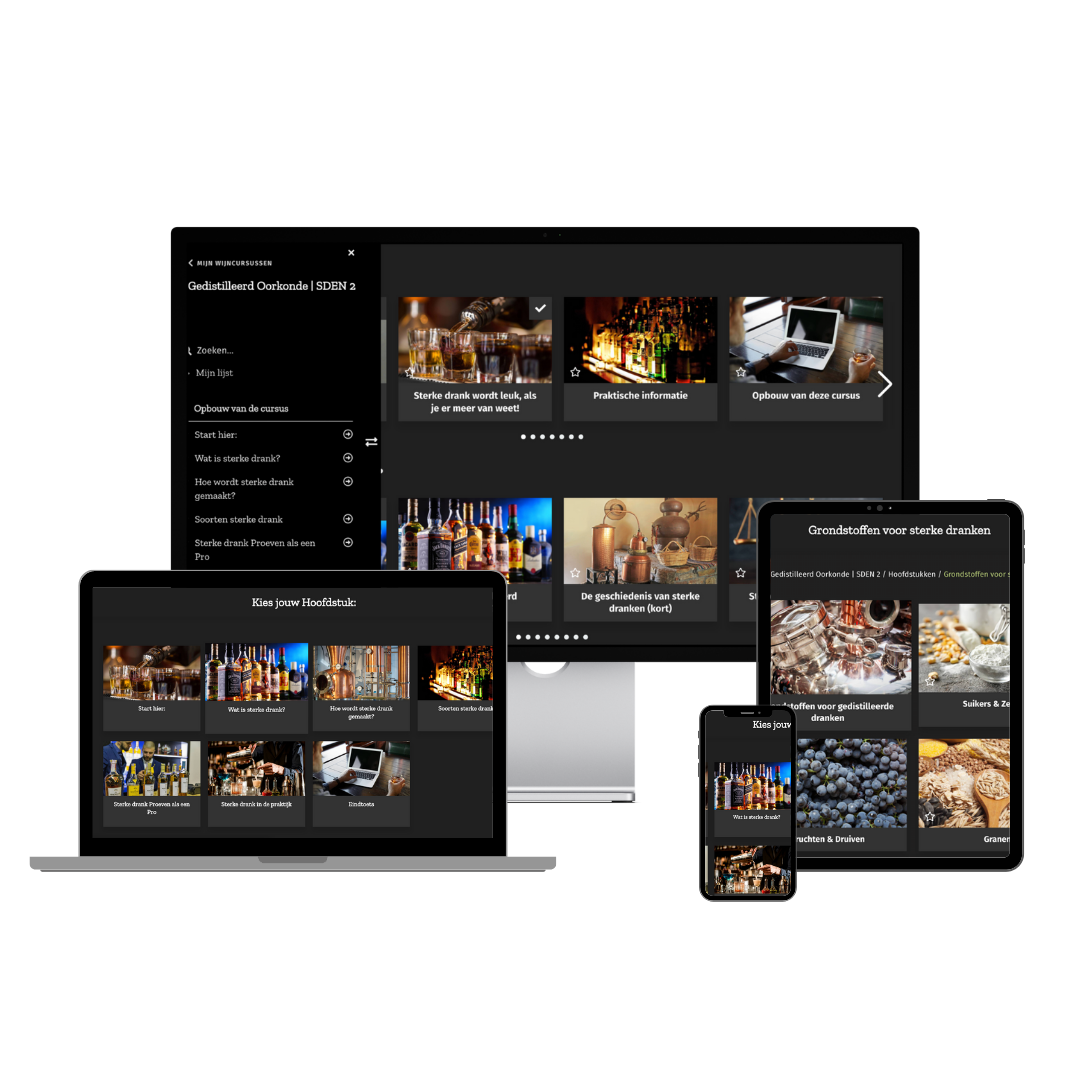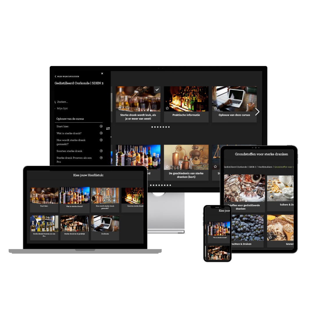Met de online cursus Gedistilleerd Oorkonde ontdek je het complete verhaal achter jouw favoriete dranken. In je eigen tempo, waar je maar wilt, en met direct resultaat in je glas.